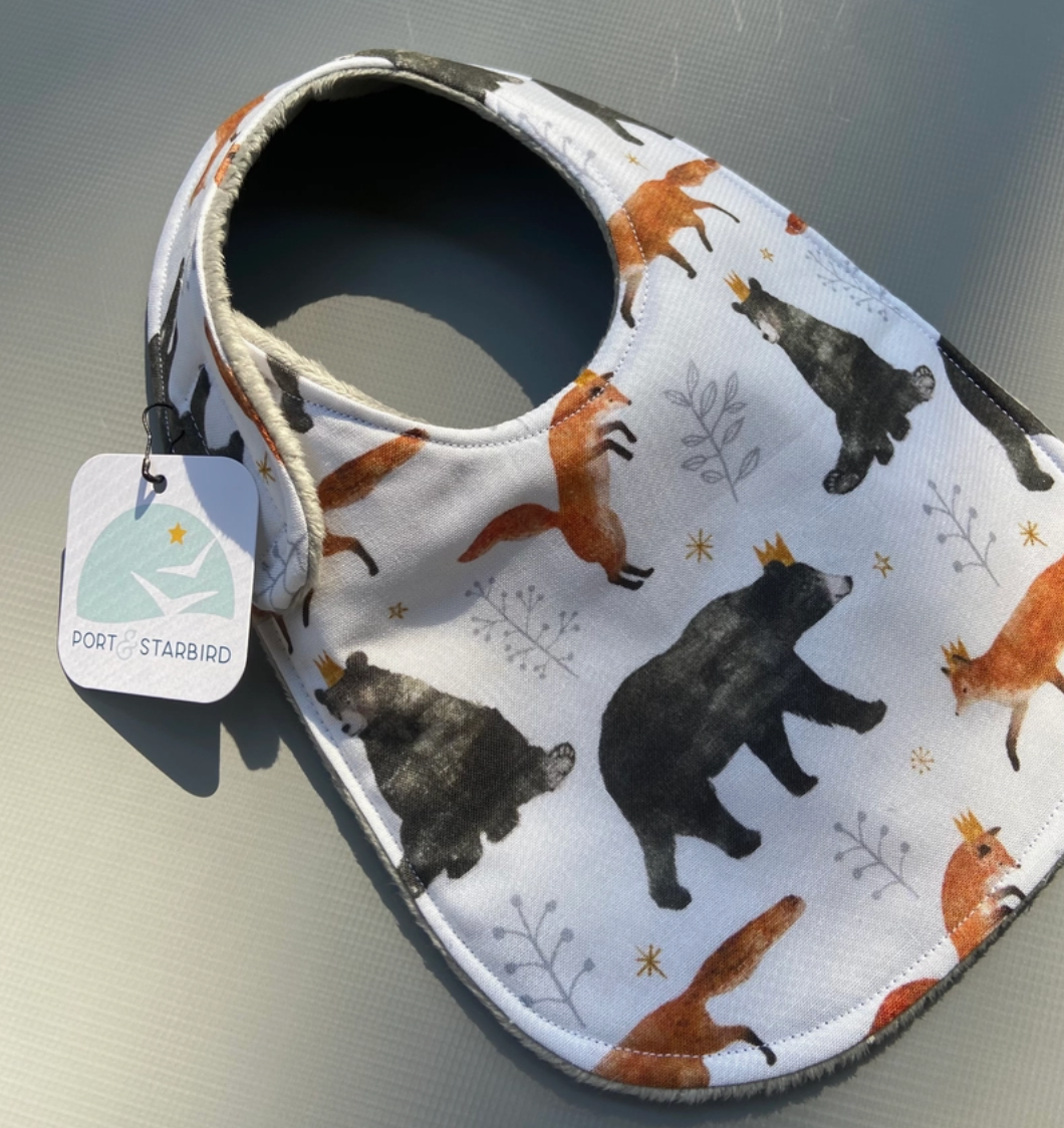 This super cute, totally functional bib will be your go to for daily feedings and drool sessions. Side closure makes putting on and taking off a breeze and super strong velcro will keep it in place as long as your baby needs it. Each bib is made of quilter's cotton, an absorbent interior layer and backed with the softest material to make your baby feel super cozy. #momapproved