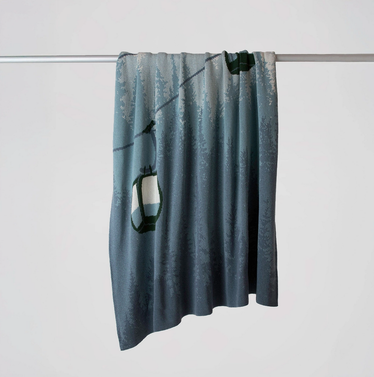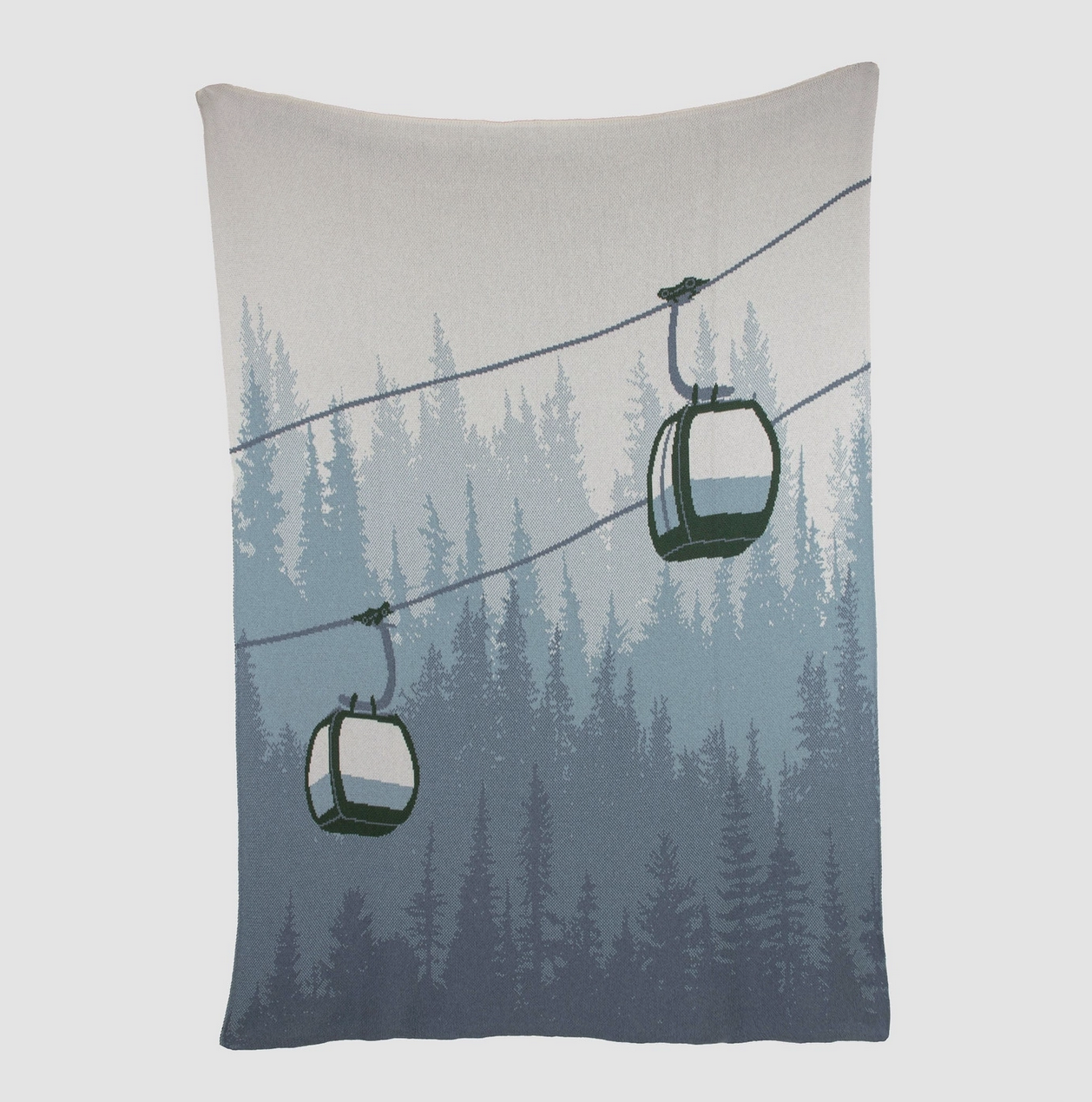 Capture the spirit of the slopes with the Alpine Lift Blanket. Bring adventure right into your home with a mountain landscape complete with ski gondolas gliding through snowy peaks. Knit from recycled cotton yarn it’s wonderfully soft, cozy, and perfect for après-ski lounging or adding a touch of winter lodge style to your home An ideal gift for ski lovers or a cozy accent for any winter retreat.