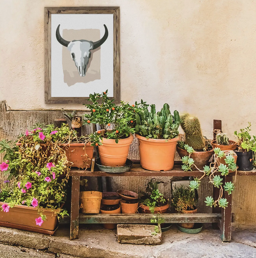 The American southwest has long been a source of inspiration for artists (as well as bohemians, mystics and free spirits) with its barren landscape, brilliant colors, and ancient history. The bleached white cow skull has long served as a symbol of these sacred lands.