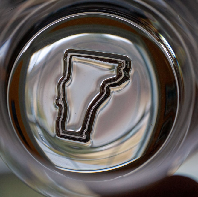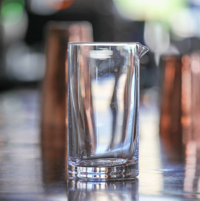 This mixing glass is individually handcrafted, stamped, and flame-polished by an artisan glass team in Vermont. It features a Vermont stamp on the base.