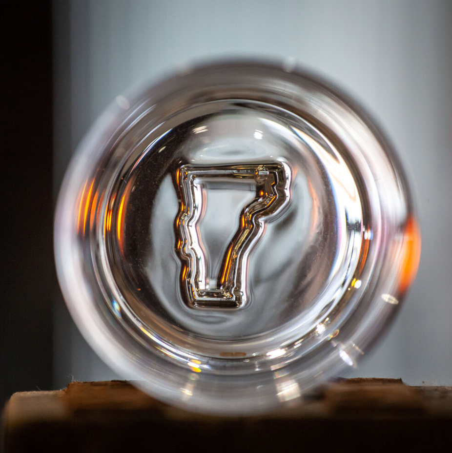 Each glass is hot-stamped on the base with the distinctive outline of Vermont.