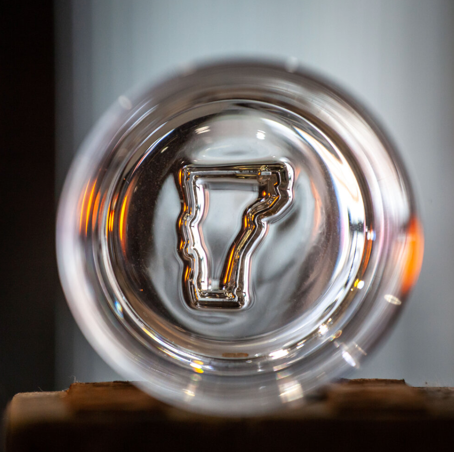 Each glass is hot-stamped on the base with the distinctive outline of Vermont