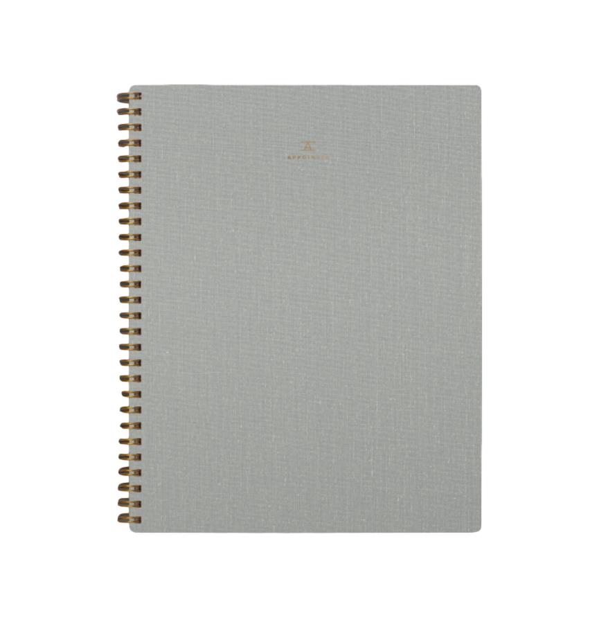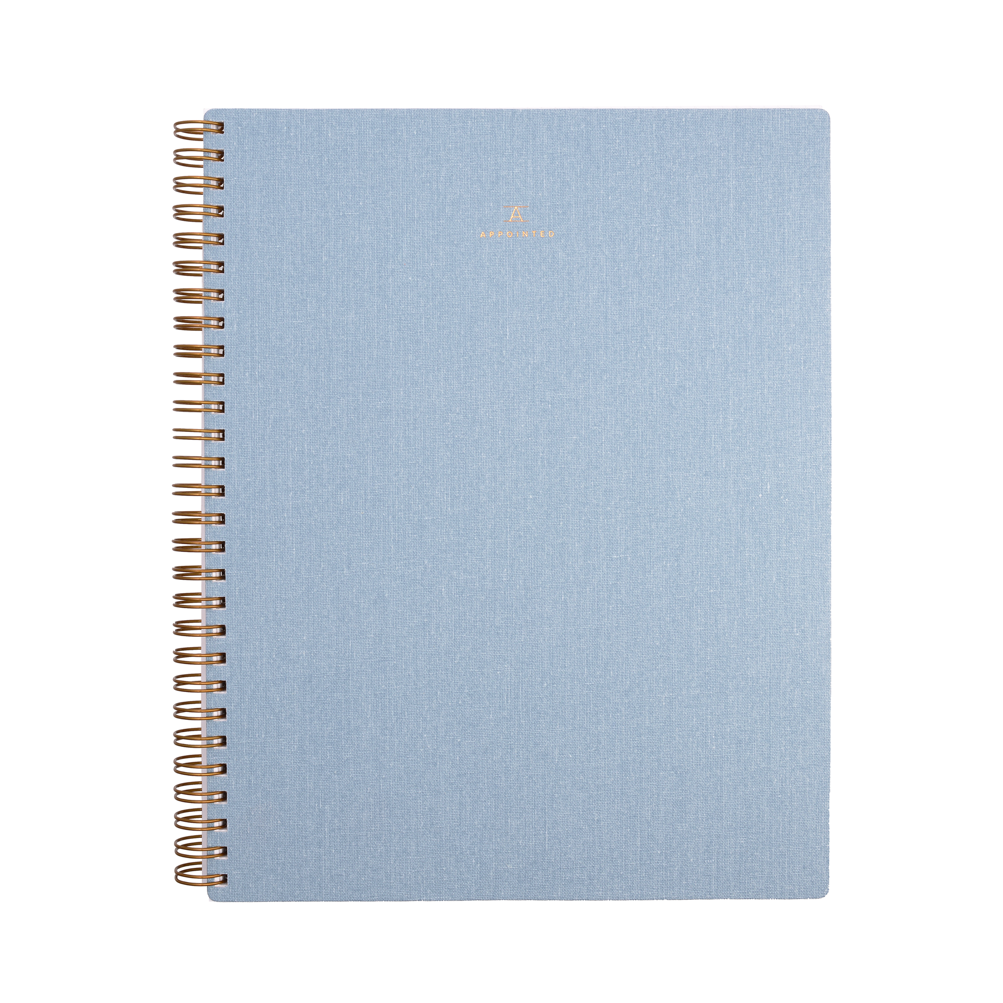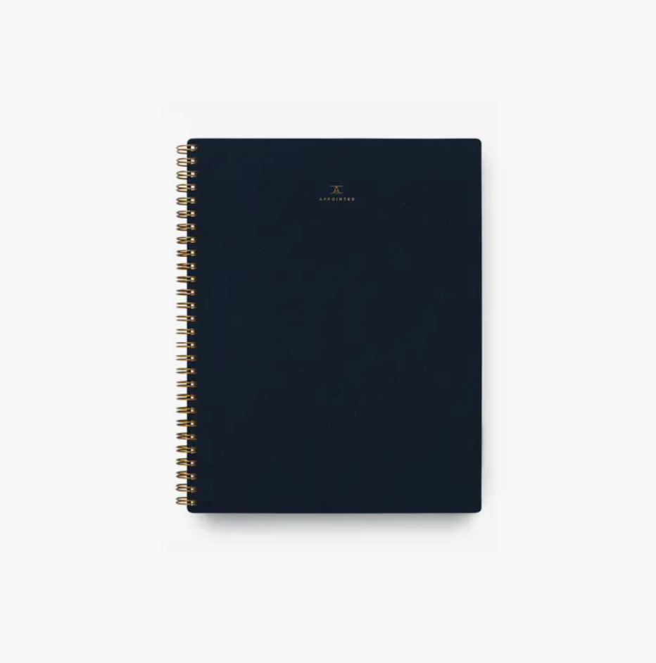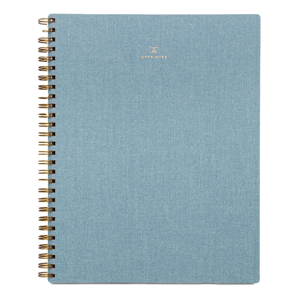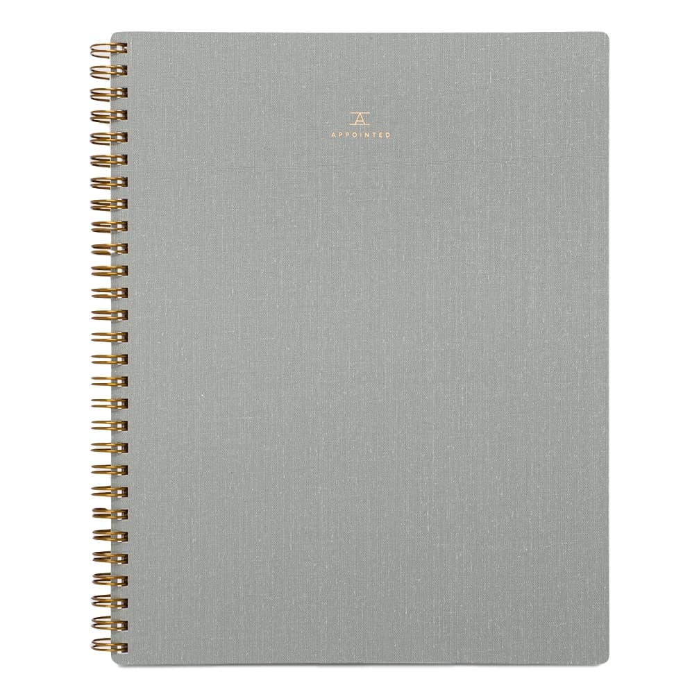 The classic keeper of everyday things. The Notebook was designed with careful attention to detail, balancing utility with signature Appointed elegance. Featuring brass wire-o binding, waterproof cotton bookcloth covers, and smooth 70 lb paper. Plus, it's American-made with responsibly sourced materials, and available in three interiors: lined, grid, and blank. Meet your perfect companion for recording thoughts, drawings, to-do lists, and personal histories.