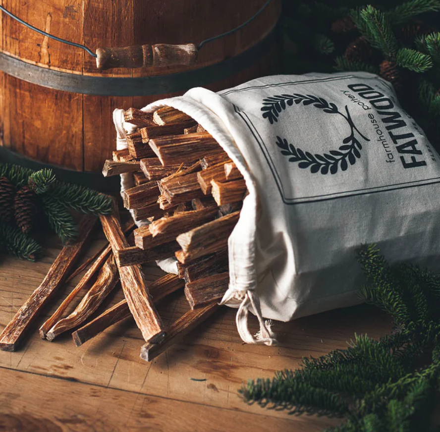 This fatwood eliminates the need for crumpled newspaper and bits of kindling by the fire. Harvested from the heartwood of pine trees, it's the natural sap content that makes these small pieces of wood the perfect way to get the flames going.