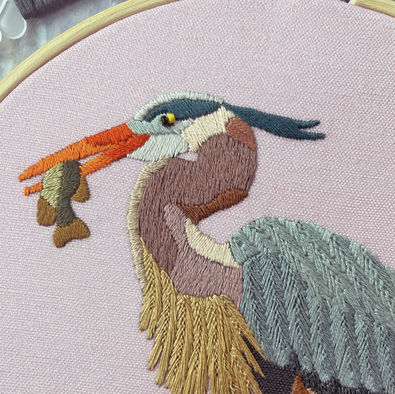 Enjoy completing this beginner-friendly embroidery and beadwork kit of one of Kate's watercolor paintings. There is only a small amount of beadwork on this kit (the eye).