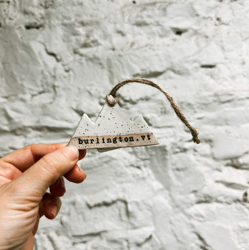 Beautiful handmade ceramic mountain ornament adds a unique, rustic, mountain decor charm to your decor or makes for a great gift. Mountain ornaments are 3" long, and are hung by a hand tied twine hemp string. Due to the handmade nature, there may be pleasing variations and irregularities in color, size and shape-- handmade items are one of a kind!