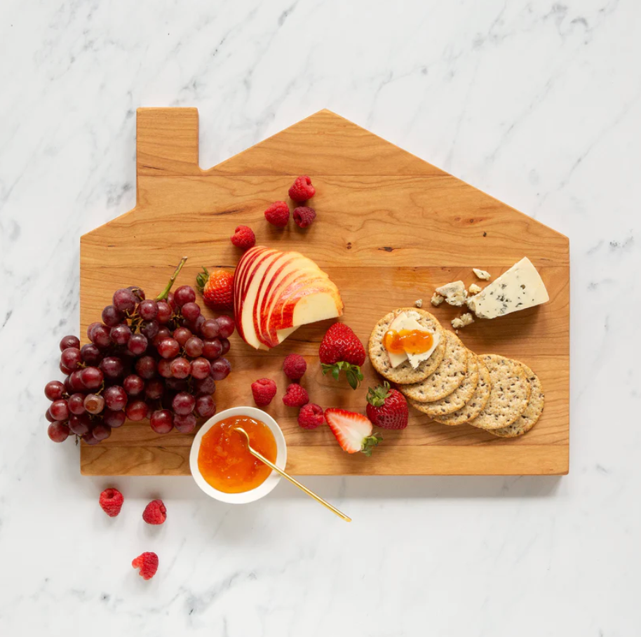 This Cherry novelty cabin serving board celebrates the love of home. A beautiful board for serving your favorite cheeses, desserts or appetizers. Lean against the backsplash to incorporate into the decor of your kitchen.