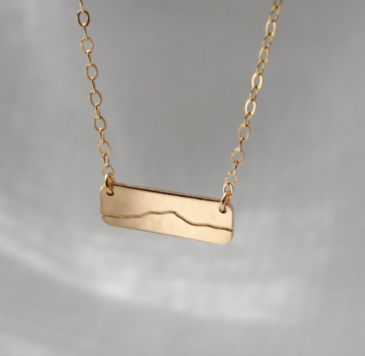 Camel’s Hump is Vermont’s most beloved mountain. Show your love for Vermont with this hand stamped bar necklace.