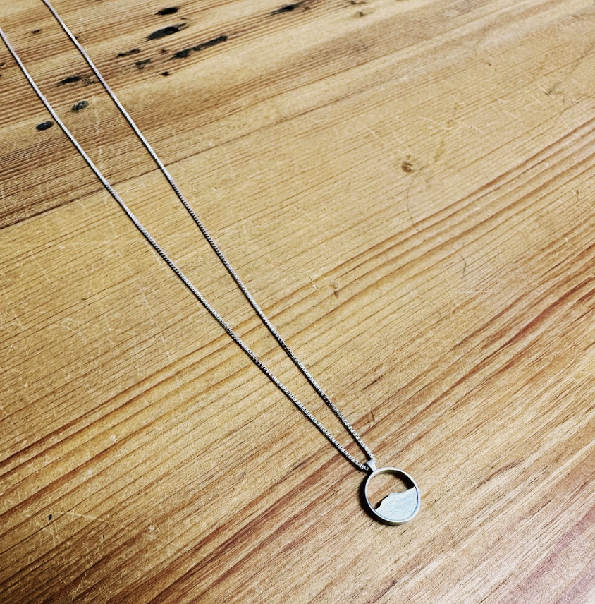 The view of the High Peaks cannot be beat. Whether you are on Lake Champlain or on top of Mount Marcy, the view is spectacular any time of the year. Brushed sterling with a 17 inch chain.