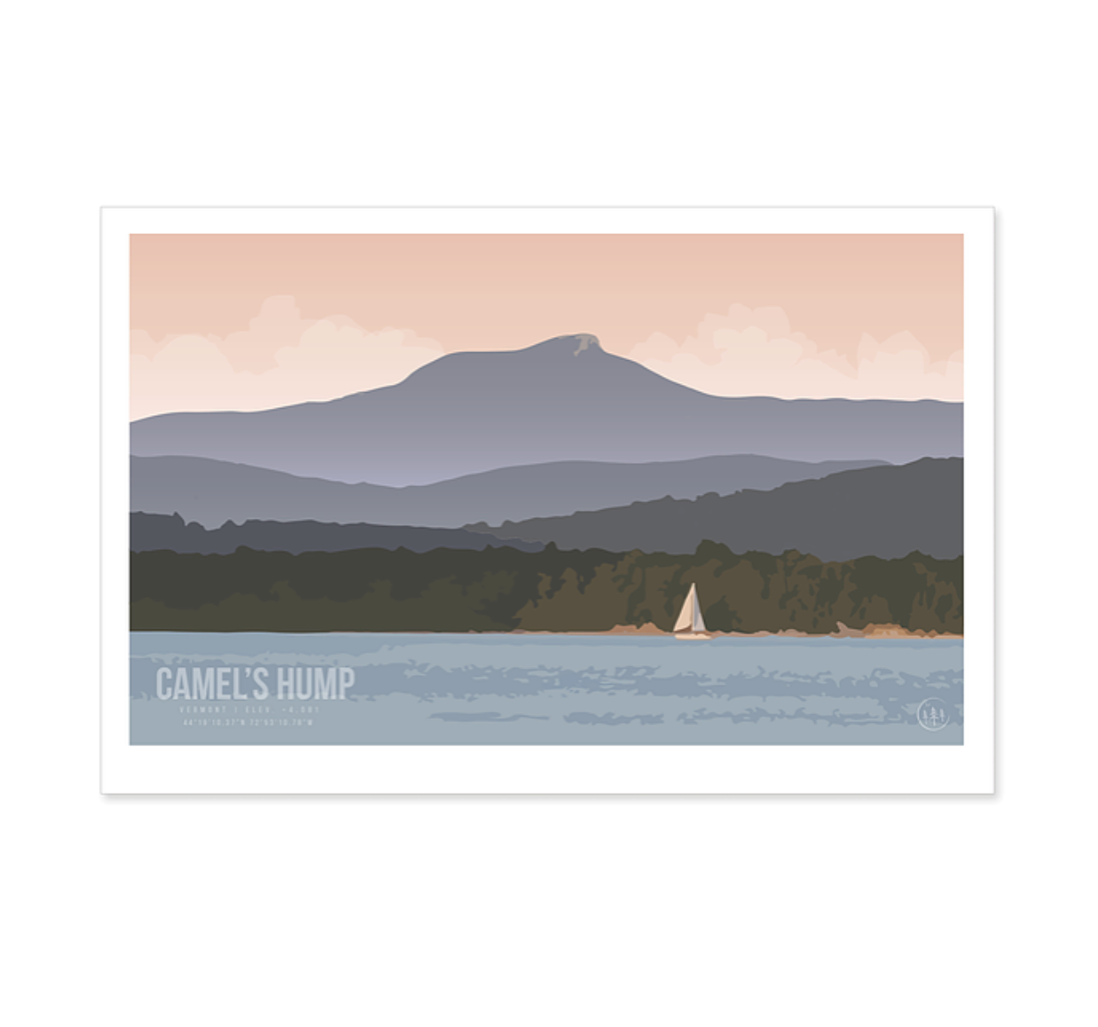 At 4,083 feet, Camel’s Hump is Vermont's third-highest mountain and its highest undeveloped peak. Part of the Green Mountain Range, Camel’s Hump is one of New England’s 4,000-footers. Because of its distinctive profile, Camel’s Hump is perhaps the state's most recognized mountain, featured on the state quarter. This is the view of "The Hump" looking east from Lake Champlain.