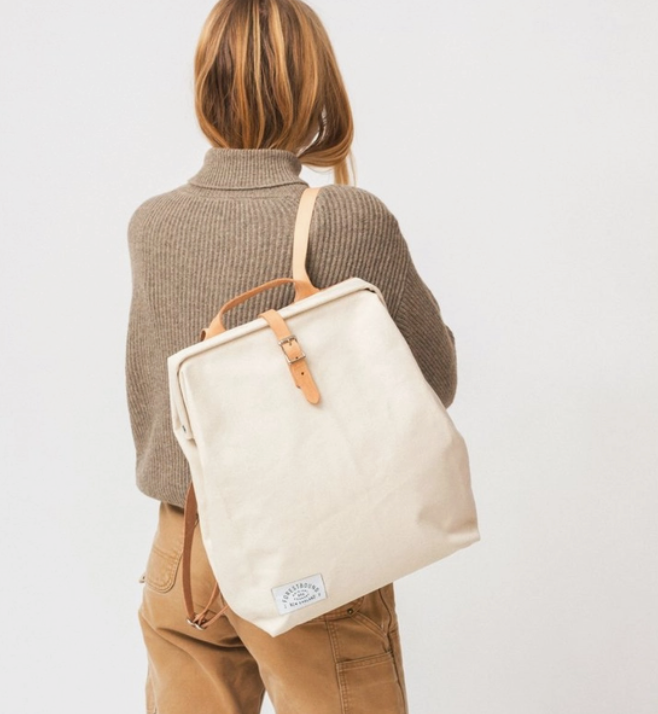 Made with durable 18oz canvas and comfortable vegetable tanned leather, this backpack is casual enough for every day use but also provides enough room to pack full for a weekend trip. Features one large interior pocket that can comfortably hold your wallet, phone, keys etc. Vegetable tanned shoulder straps are easily adjustable. A lightweight aluminum frame at the opening of the backpack allows for easy access as well as a secure closure supported by a leather buckle. Our backpacks feature a lightweight fiberboard bottom at the base of the bag. This allows for a ton of stability no matter what you stuff inside. Backpack is sized to comfortably fit a 15" laptop. Approximately 13" wide at opening of bag. 15" wide at base. 15" tall. 6" deep.