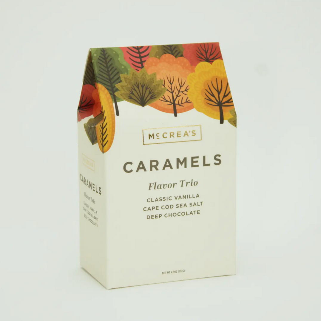 Caramel lovers rejoice!  Each box contains 5 pieces each of these favorite flavors: Classic Vanilla, Cape Cod Sea Salt, and Deep Chocolate. 15 individually-wrapped pieces of caramel in all. The Autumnal Gable Box is perfect for special fall occasions such as Thinking of You, Get Well Soon, gifting and more (or you can just keep it for yourself).