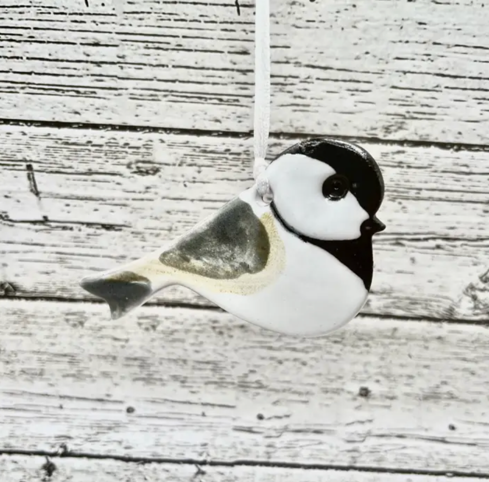 The brave and cheerful Chickadee is a faithful friend during the long winters. Handmade pottery ornament which is useful, affordable and decorative, made from Maine "blue" clay.