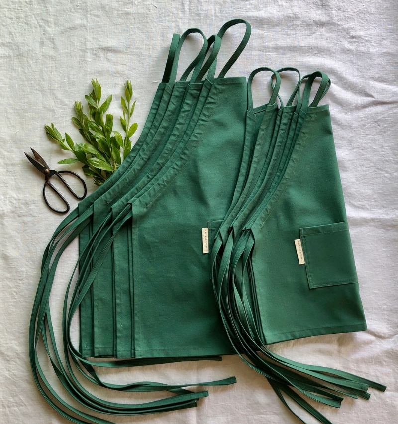 This children's apron is a simple, fun design that gives great coverage to your little one. The neck strap slides to adjust, and the pocket in front gives them a place to hold their treasures.