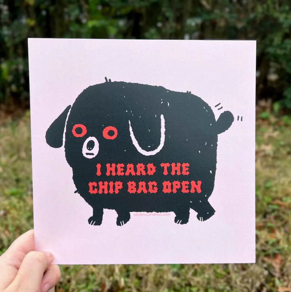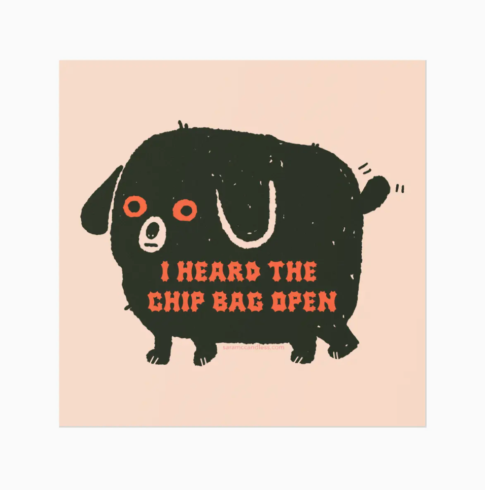 Hey. I heard that. Now cut the shit and give me a little crunch. We’ve all been there - the sound of a freshly opened chip bag turns heads, and makes stomachs growl. A great accent for the eternally hungry. The print measures 8” x 8” inches and is printed on high quality, matte, acid-free paper. Each print comes packaged individually in a plastic sleeve with cardboard backing.