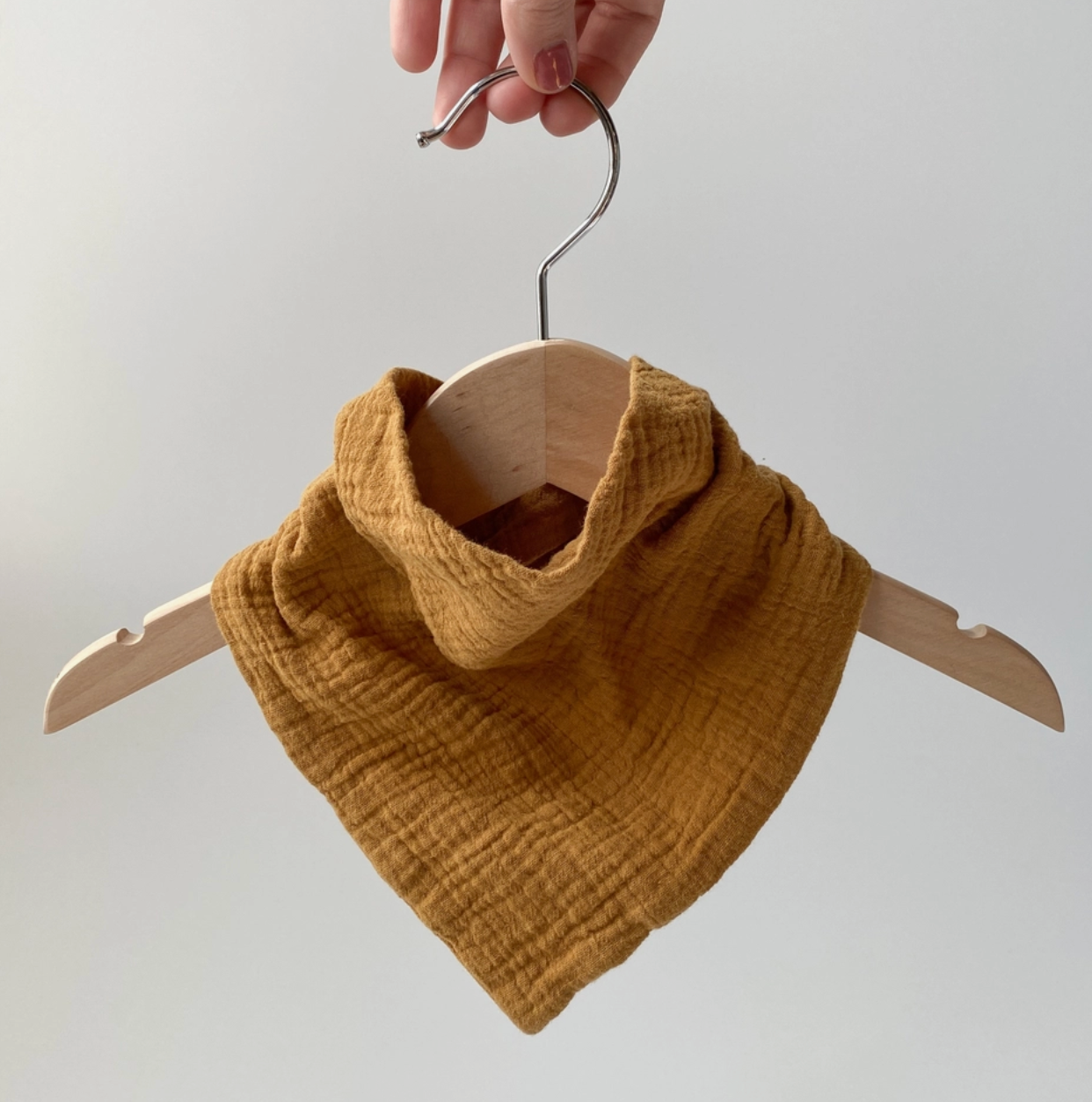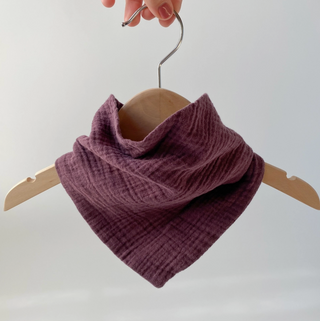 The Bandana style bib is a great gender neutral bib style. 2 sets of snaps allow for size adjustment and fit for a wide range of ages. The pointy triangular style is great if you need a little more coverage. Looks just like a bandana while worn. Nice and lightweight, your baby won't even notice it. Goes with any outfit or style. Not restrictive, or hot. Made of thin, soft, breathable cotton crinkle gauze.