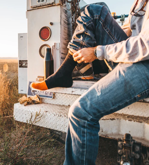 A cushioned toe box is designed to integrate with steel toe boots and deliver extra comfort and warmth. The Steely feels as good at the end of the day as they do when you first put them on.