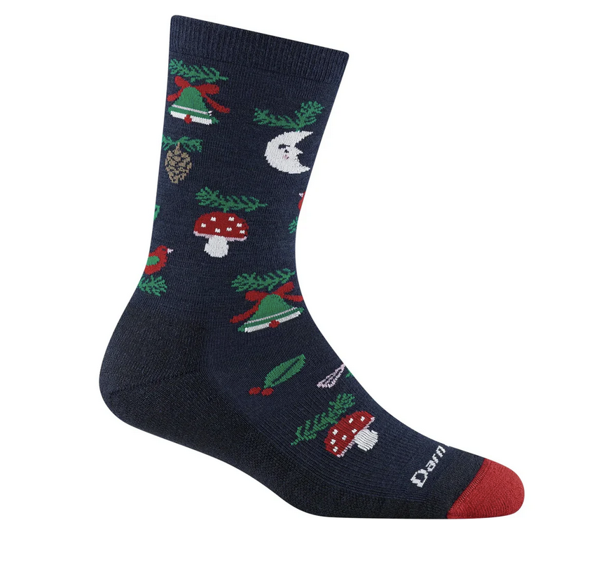 Oh, what fun! Darn Tough's Tinsel Town is a women's lifestyle crew sock with a performance fit intended for everyday use. Lightweight Merino wool with just the right amount of cushion underfoot keeps feet cozy and comfortable. All Darn Tough socks are knit in Vermont and come with an unconditional guarantee.