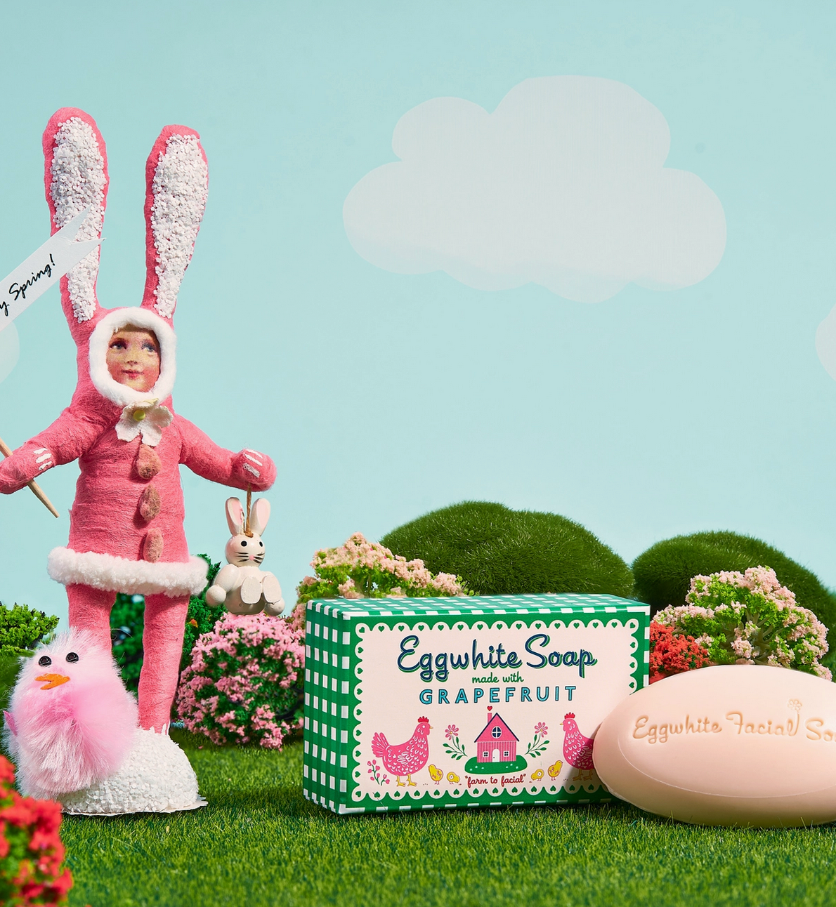 Farm-to-facial fun: Add some warm water to your Eggwhite bar to create a lovely, rich lather. Smooth over your face and neck. Let it work its magic for five minutes. Then, gently rinse off and pat dry. Enjoy the radiant glow!