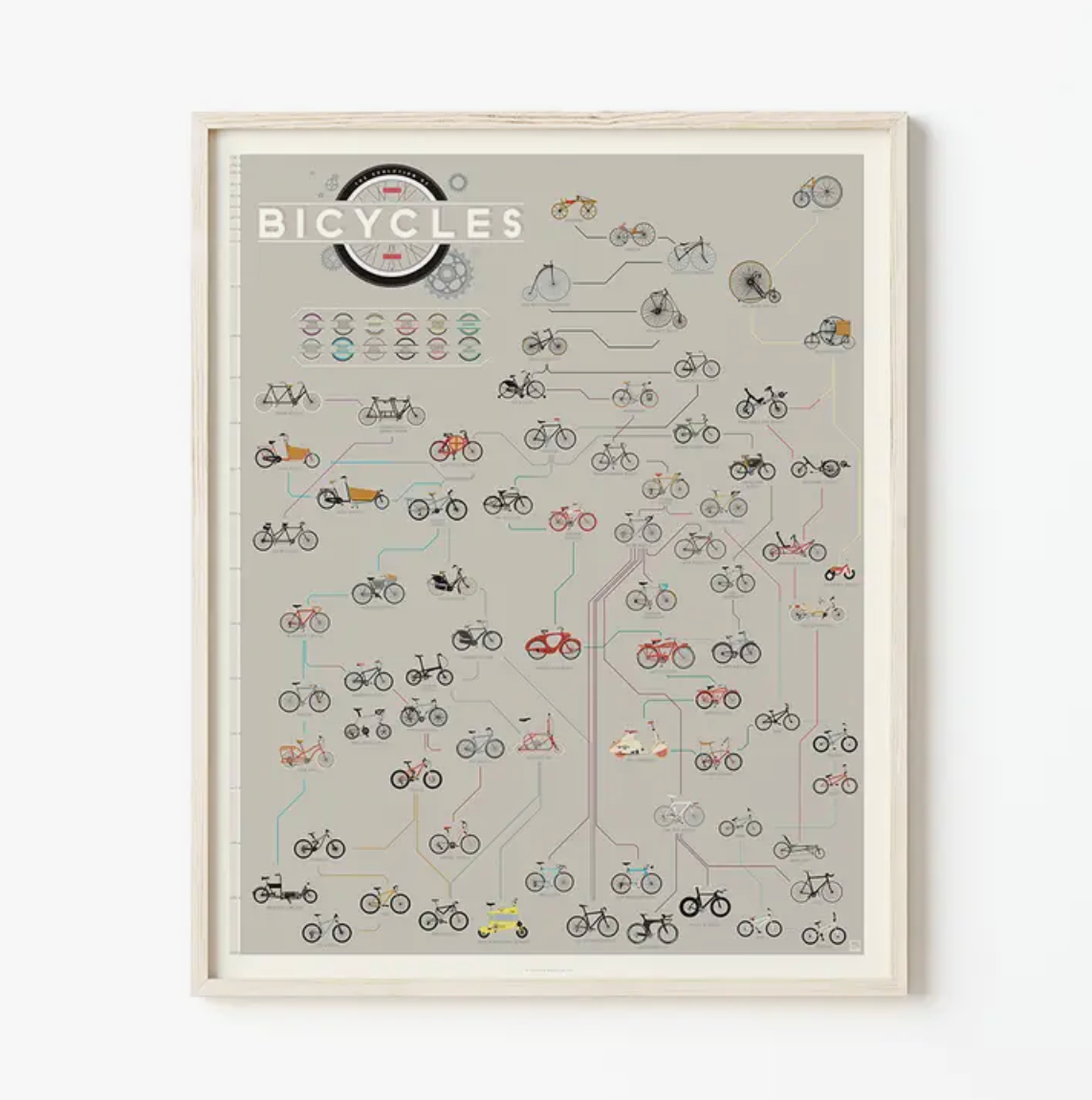 Trace the evolutionary tree of the bicycle from 1780 to the present day with this be-spoke timeline of two-wheeled transportation.