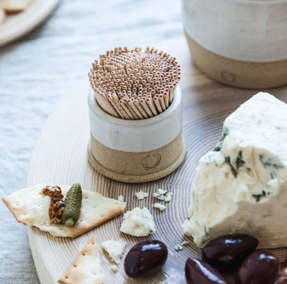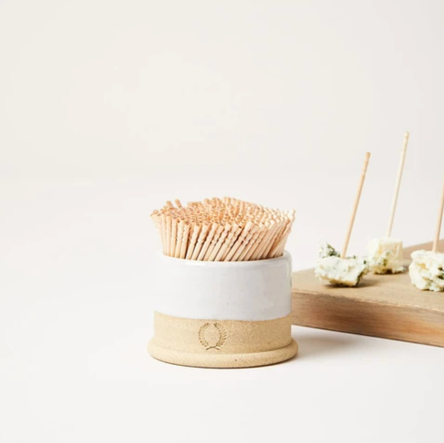 Serve it in style with this Farmhouse Pottery toothpick holder, perfect for serving alongside cheeses and hors d'oeuvres. These toothpick holders feature a partial dip glaze. Countryman is a straight cylinder style with a small lip at the bottom.