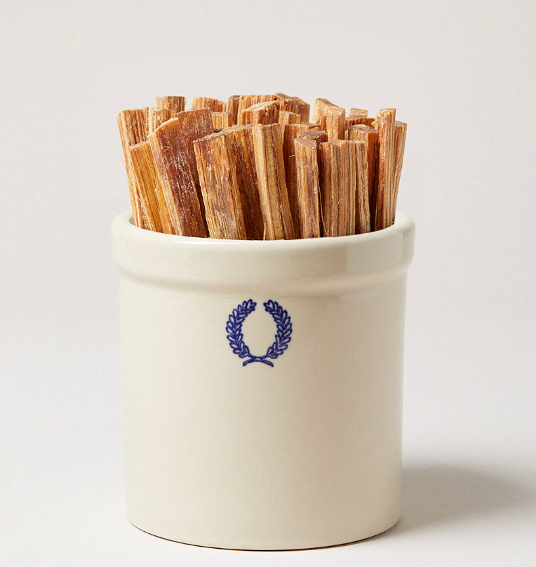 Designed to live on the mantle or hearth, this stoneware crock is both decorative and functional. Embellished with our signature laurel and generously filled with a bouquet of fatwood fire starter, you'll never need newspaper by the fireplace again.