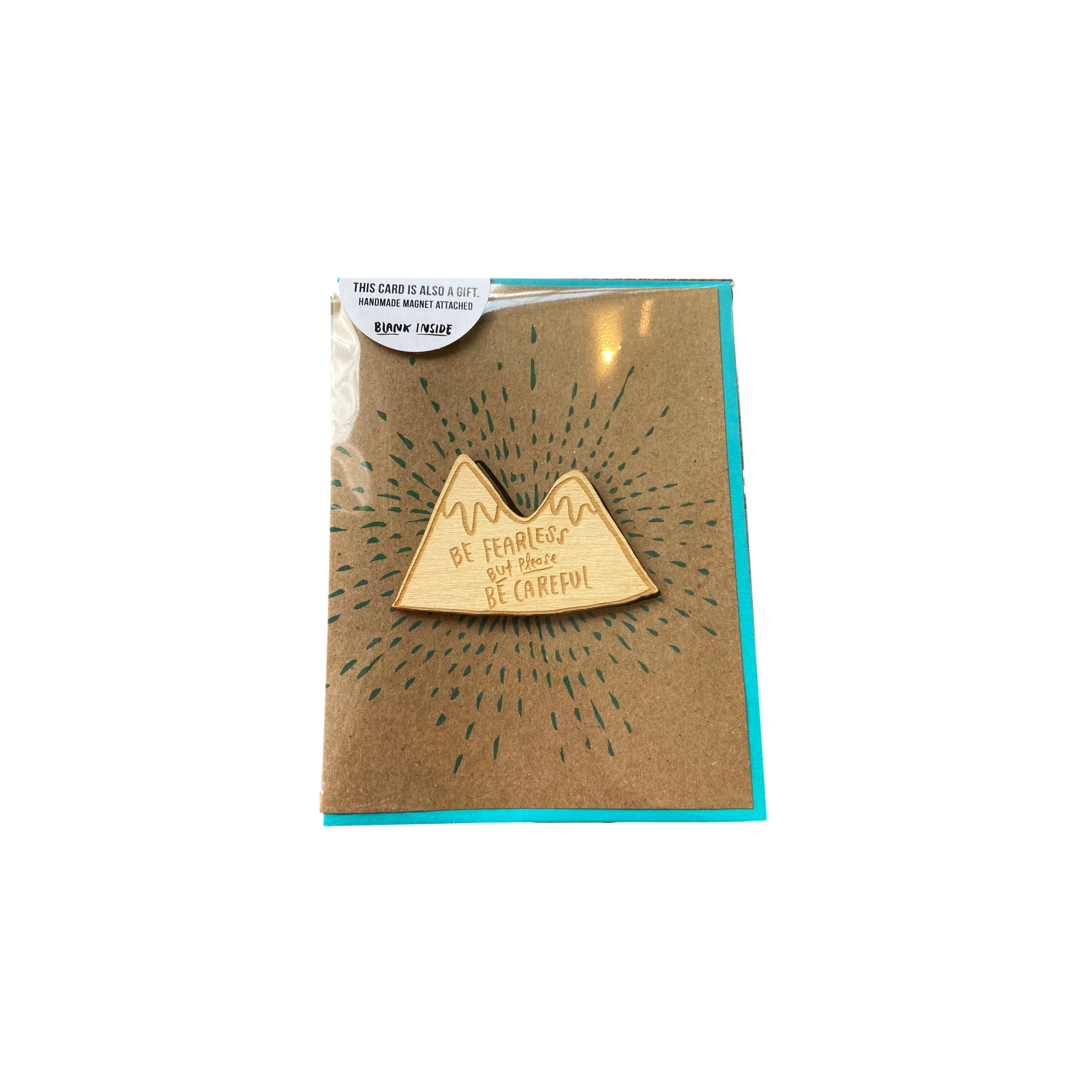 Words to live by: Be fearless, but please be careful. Engraved on a little mountain, which symbolizes a very big, very real mountain.