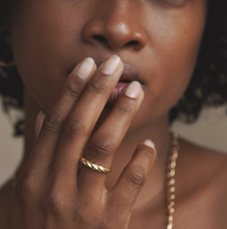 Inspired by a breezy afternoon on the beach and wind blown sandy textures as the sun sets, an alternative take on a classic style, perfect for everyday wear. Fits well on any finger, especially the pointer, middle, or ring finger.