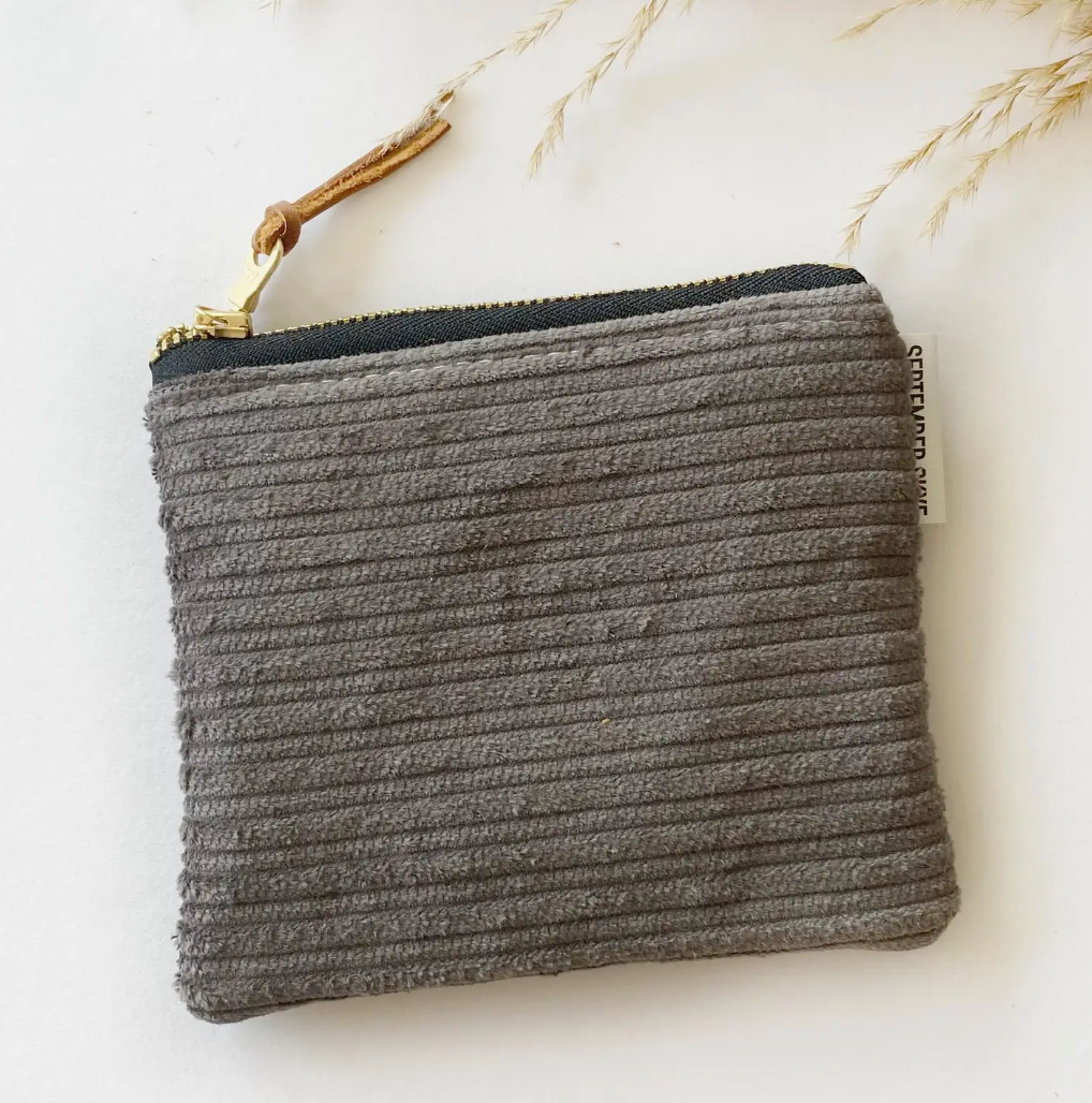 Gray Corduroy Small Square Pouch