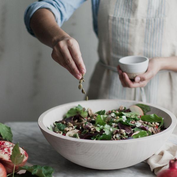Farmhouse's crafted bowls are tactile, down to earth and truly unique in design. Each piece is hand carved from new england ash and then finished in Farmhouse's Vermont workshop with 100% food safe natural teak oil. Decorate or serve a fresh farm salad to make a true farm-to-table statement.