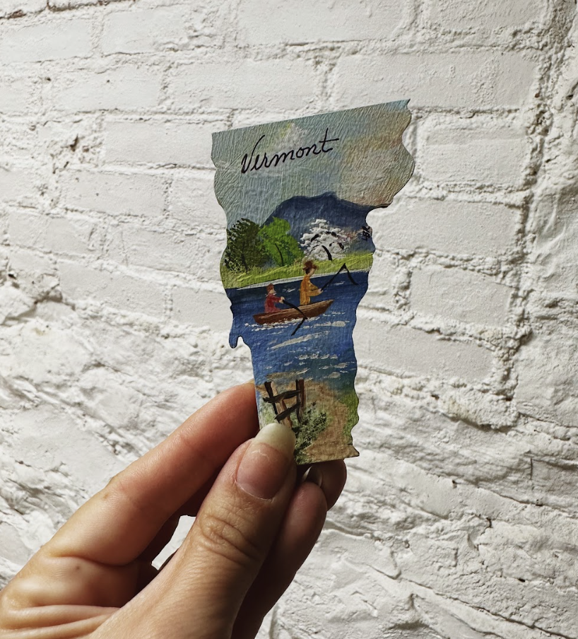This Handpainted Vermont Ornament by Luthera Rainville features rural landscape scenes in various seasons. One of a kind, no two are alike as they are painted by hand.
