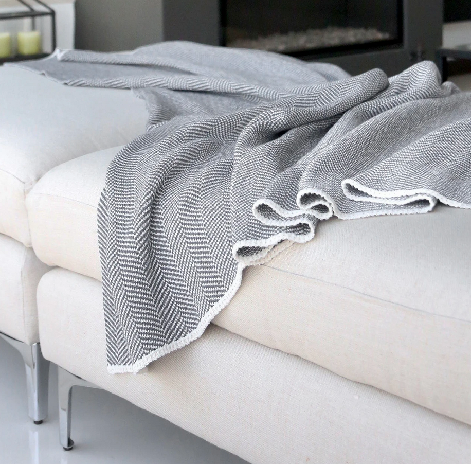 This Herringbone Throw is a perennial favorite adding classic style and cozy comfort to any space. Knit to last from sustainable yarn, it is the ideal year round blanket. The timeless herringbone design available in a choice of colors makes it the perfect gift for any occasion.