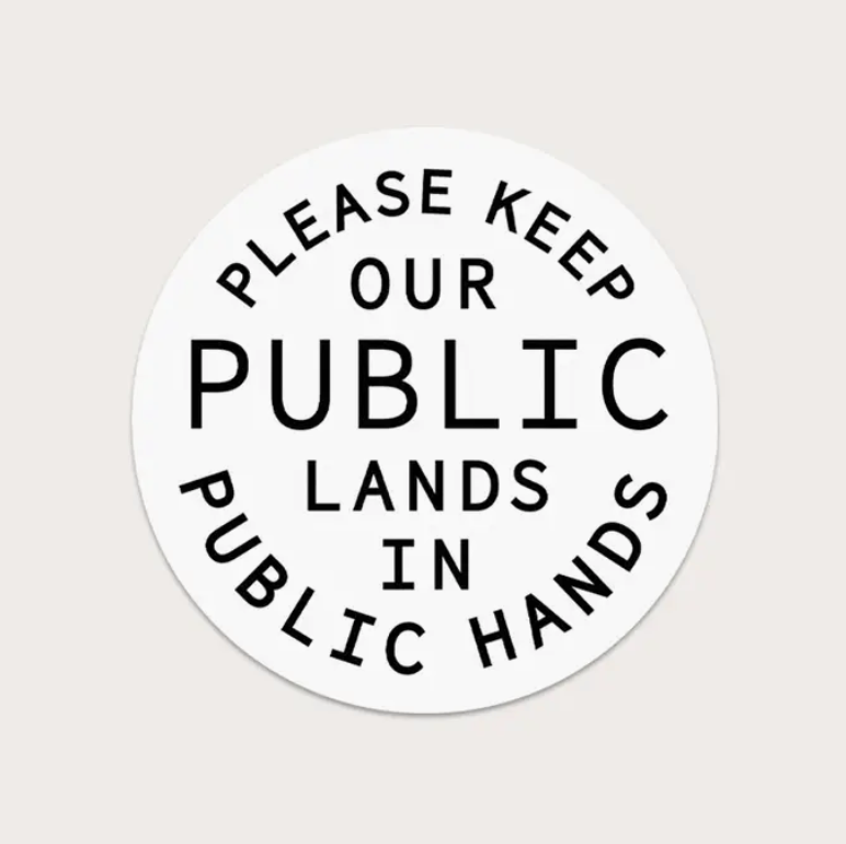 “Public Lands” vinyl sticker features bold black lettering inside a bright white circle. Printed on high-quality, glossy coated vinyl and sized at 2.5x2.5 inches, it’s dishwasher safe and weatherproof, perfect for water bottles, laptops, or coolers.