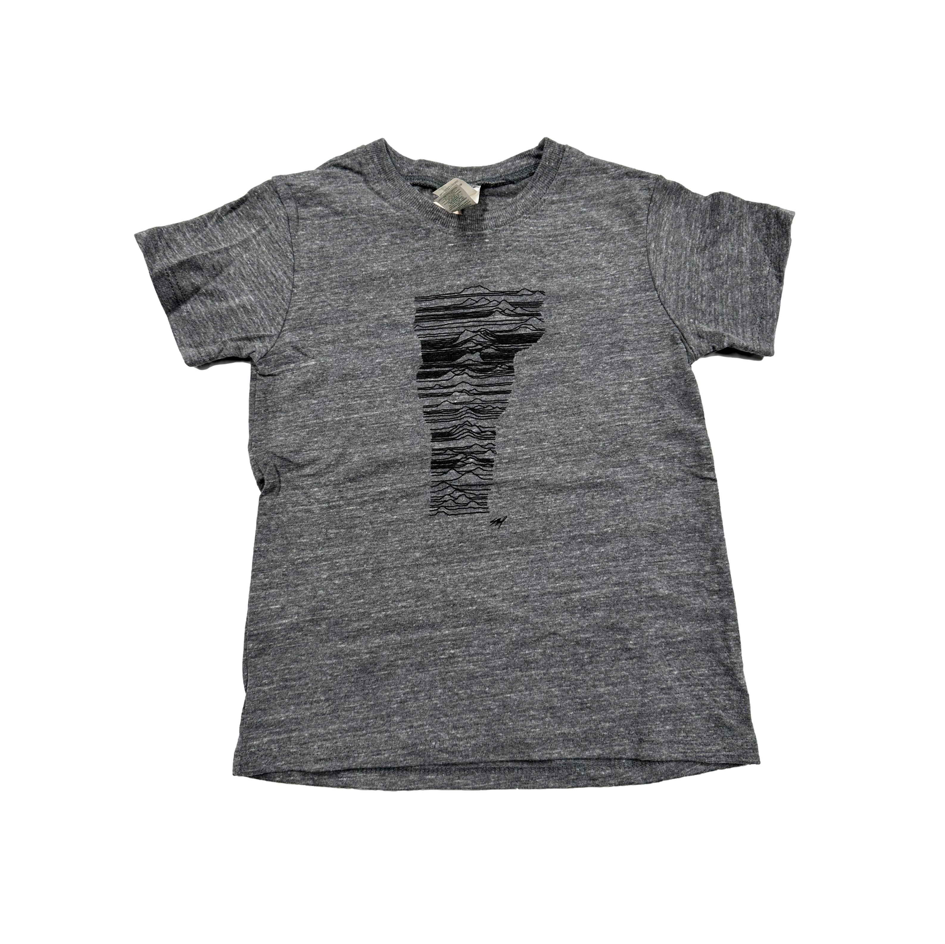 As a Vermont mountain enthusiast and map nerd, the artist of this print wanted to capture Vermont in a unique way. To create this work, the artist first needed to find all of the mountains and hills of Vermont, then plot them on the map - then use photos to hand draw each of the silhouettes. The artist was sure not to forget Mount Philo in the artist's home town of Charlotte. Find you favorite mountains to summit!