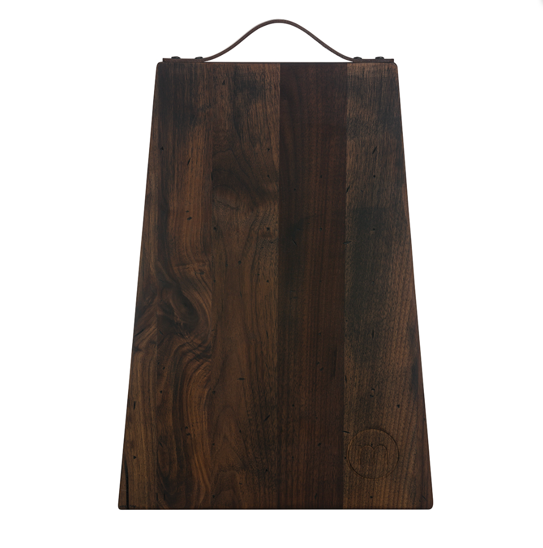 Walnut meets leather in our Rustic Walnut Rectangle Serving Board. This beautiful serving piece has a leather handle that is fastened with hammered antique nails. This board is crafted of premium American Walnut. The patina of an antique without the wait. We love to use the board to serve, for a party of 6-10 people, everything from cheese, to a salad to a an assortment of desserts.