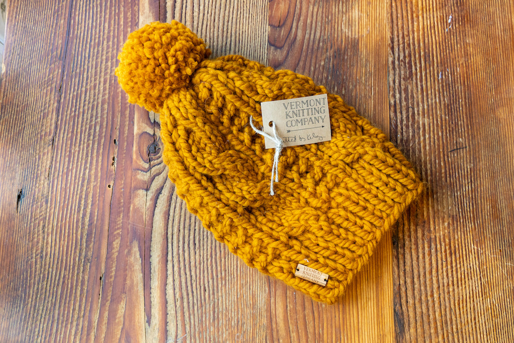 The perfect winter hat combining style and warmth, knitted with warm and cozy lamb's wool and acrylic blend. Ribbed on the bottom with a cable design on top, finished with a pom pom on top.