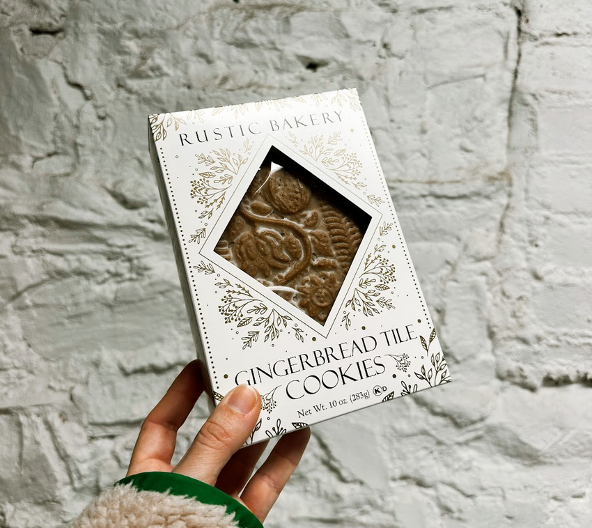 This holiday season indulge in these sophisticated and delicious tiles that are hand rolled and trimmed. They are full of holiday spices and are topped with a delicate vanilla glaze that highlights the intricate engraved surface.