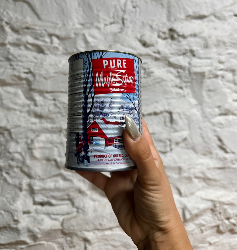Handpoured in Canada, this Maple Tin Candle features a vintage-inspired maple syrup tin and features a crackling wood wick. Made with real maple syrup, it will fill your home with the warm, sweet scent of maple. Artisan wood wicks are made of natural wood using “good forestry” practices.