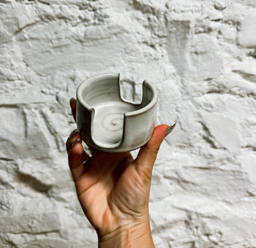 A perfectly sized sponge holder. Full glaze. Dishwasher, microwave and Oven Safe. Each piece is made completely by hand so while similar, no two will ever be the same.