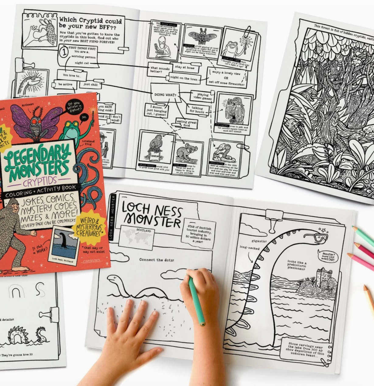 For true believers and skeptics alike, this book about CRYPTIDS is sure to suck you in (and legend has it, you may never return). Featuring well-known cryptids like Sasquatch and Loch Ness Monster, as well as lesser-known creatures like the Loveland frog! This Coloring and Activity book is unlike anything else out there, and kids and parents can tell the difference!