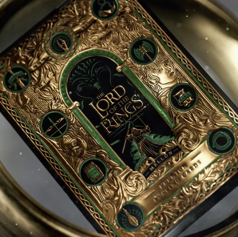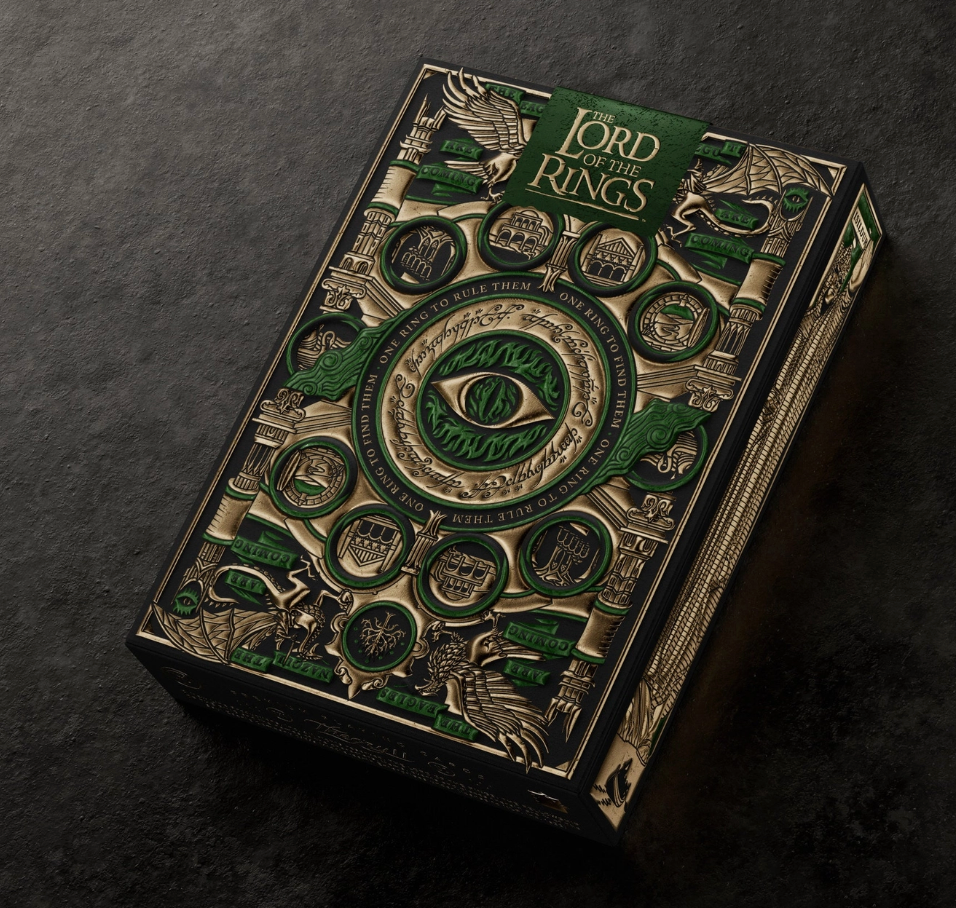 One deck to rule them all. Premium playing cards, Made in America. Featuring beloved characters from The Lord of the Rings movie trilogy - from Frodo and the rest of the Fellowship of the Ring to Gollum, Saruman, and the Dark Lord Sauron. The deck follows their journey from The Shire to Mordor and their adventures in between.