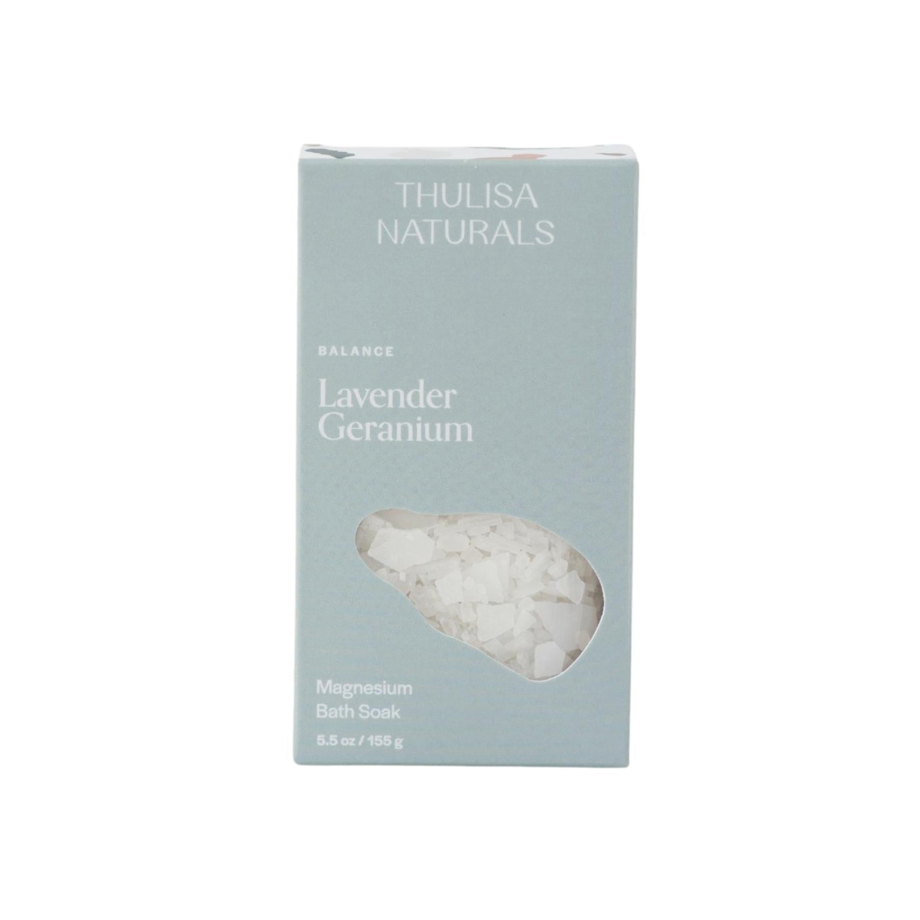 Ingredients: Magnesium Chlorise Hexahydrate (Magnesium Flakes ), Mediterranean Sea Salt, lavandula angustifolia (lavender) oil, pelargonium graveolens (geranium)