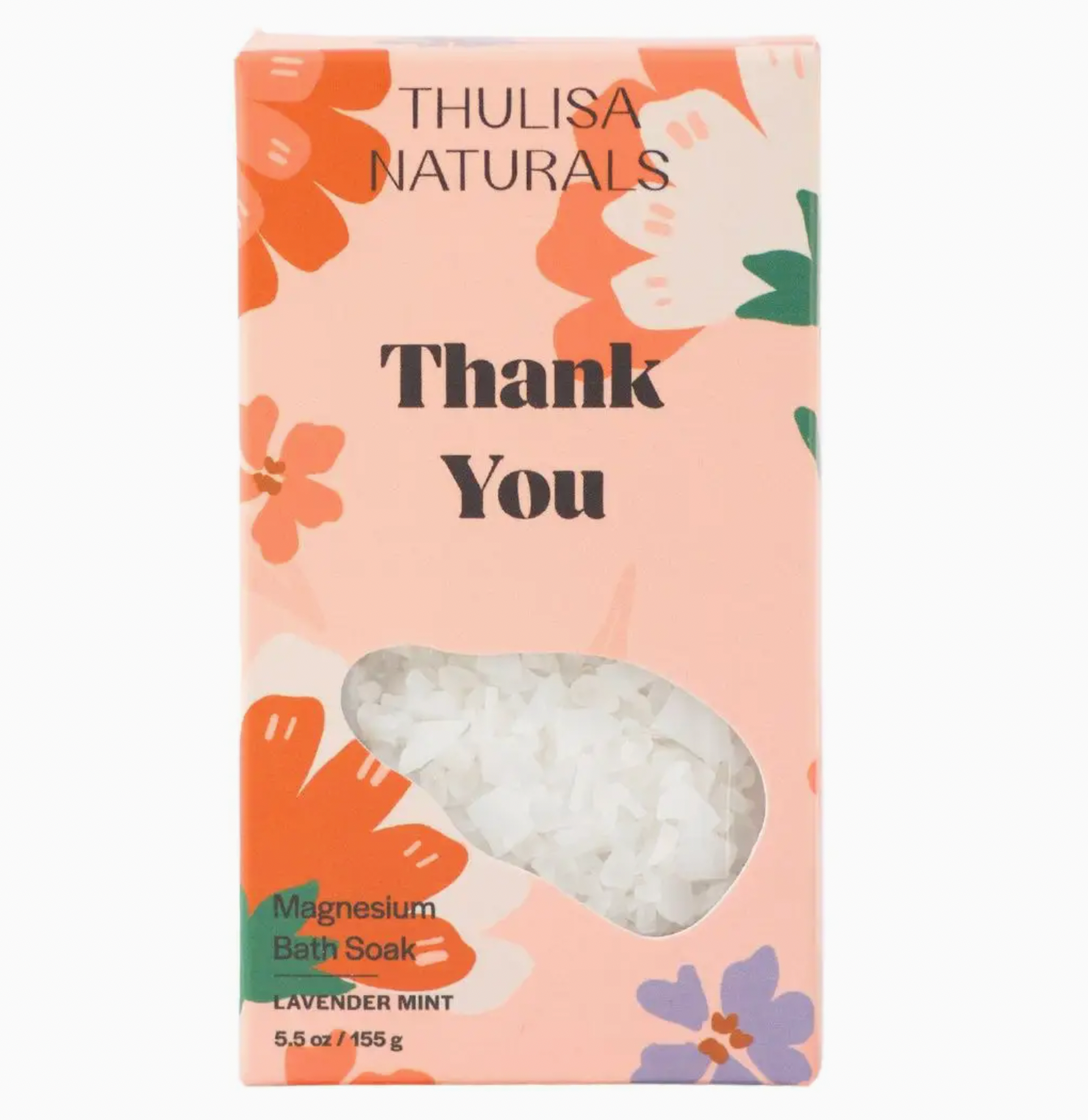 Show gratitude with the refreshing and calming essence of this Lavender Mint Magnesium Bath Soak, thoughtfully packaged in a gift-ready box that says “Thank You.". This luxurious blend combines the soothing floral aroma of lavender with the invigorating coolness of mint, creating the perfect balance for relaxation and rejuvenation. Designed to ease muscle tension, reduce stress, and leave skin feeling soft and revitalized, it’s a heartfelt way to express appreciation.