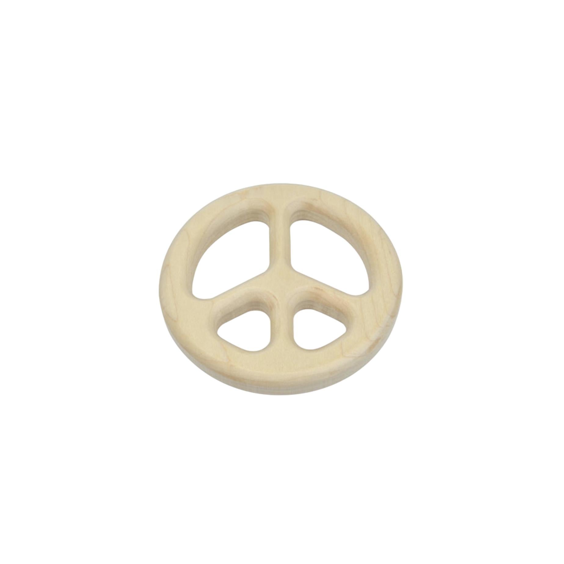 These natural teethers are the perfect answer to concerns over toxic chemicals and finishes. This maple teether is in the shape of a peace sign. Measuring 4" in diameter and 3/4" thick and are only available unfinished. Each is rounded and sanded smooth to the touch and to the mouth and gums. Large enough for babies to get their hands and arms around and small enough to be comfortable in the mouth.