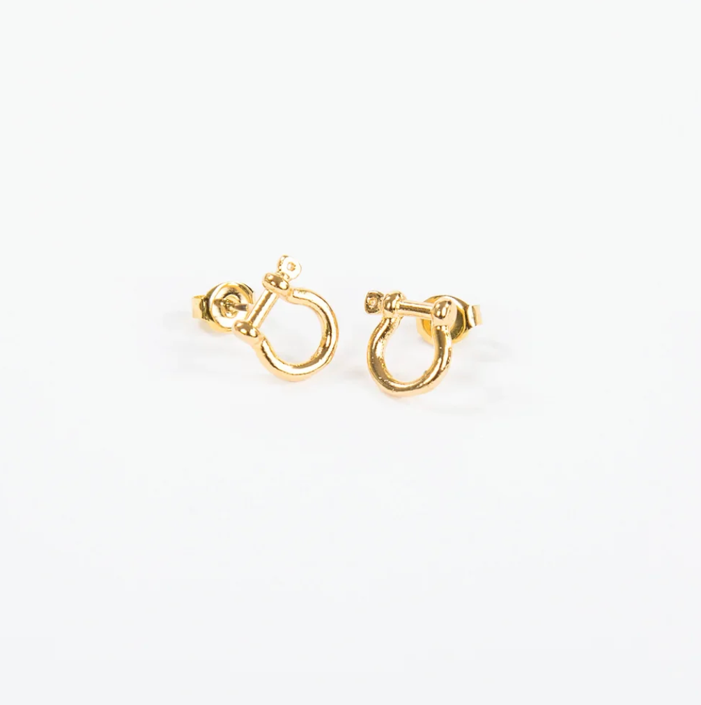 These shackle earrings capture this maritime legacy in beautiful 14 kt gold dipped brass, or sterling silver, offering both style and meaning in a single piece. Mariner Shackle earrings are 3/8" in diameter and come packaged in a signature vintage chart lined tin.