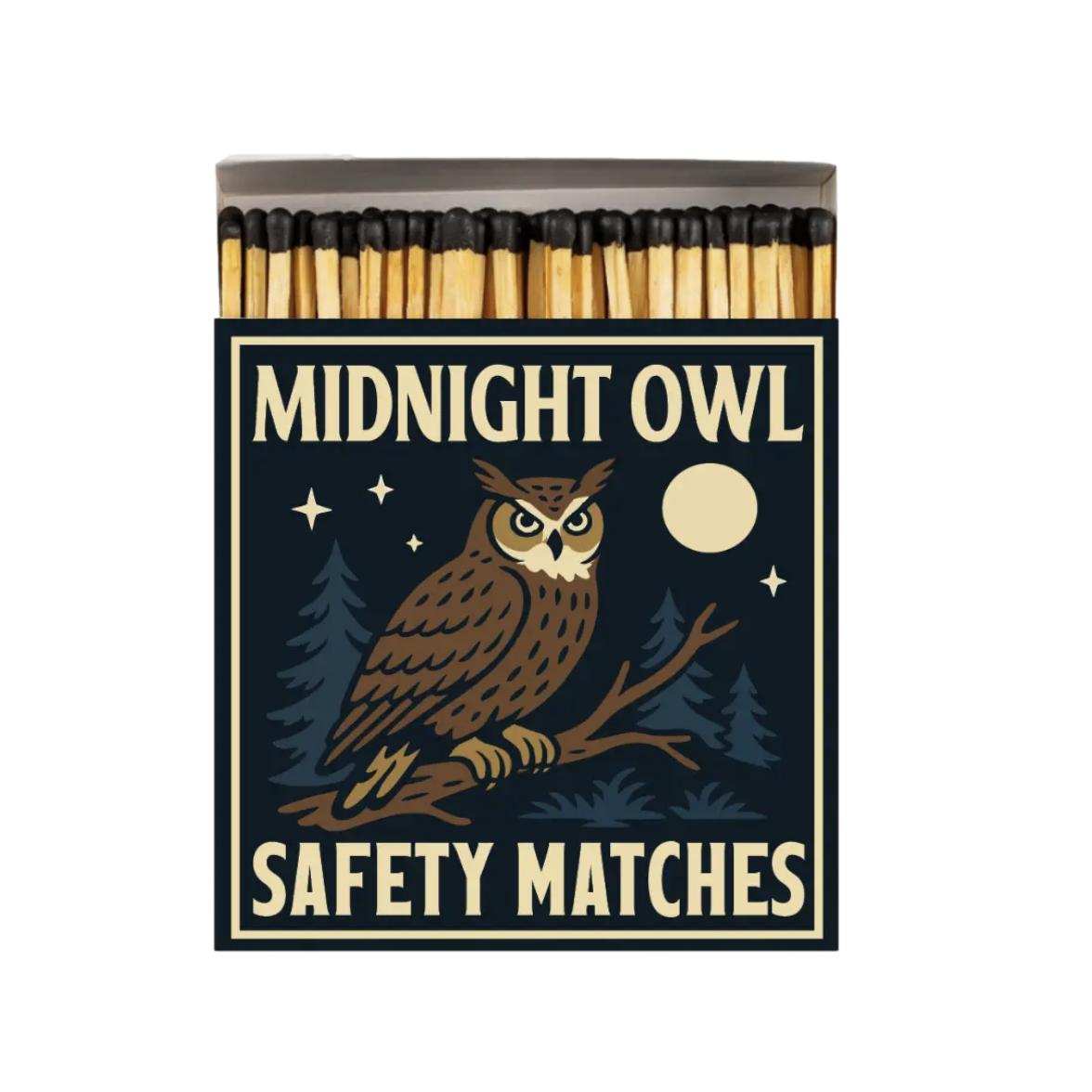 For the night watchers and dreamers — the Midnight Owl glows with vintage midnight tones and a hint of mystery. Light up your late-night reads or fireside chats with this timeless matchbox.