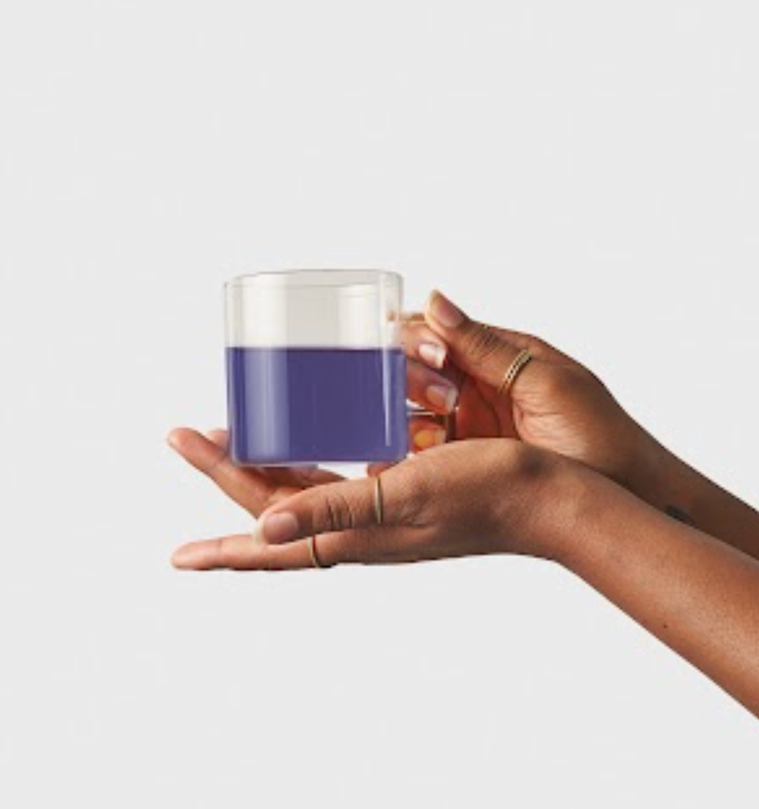 This tea’s electric blue hue comes naturally, from butterfly pea flowers. The delicate flavor is balanced out by tulsi and peppermint for a minty blue beverage that’s perfect for staying cozy.