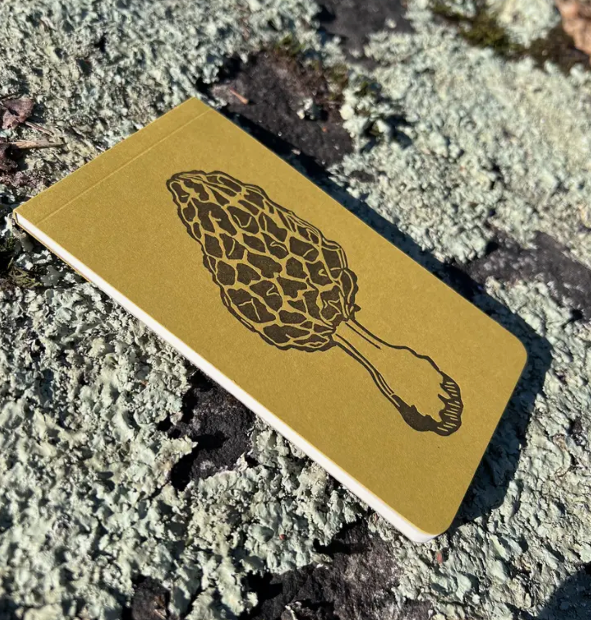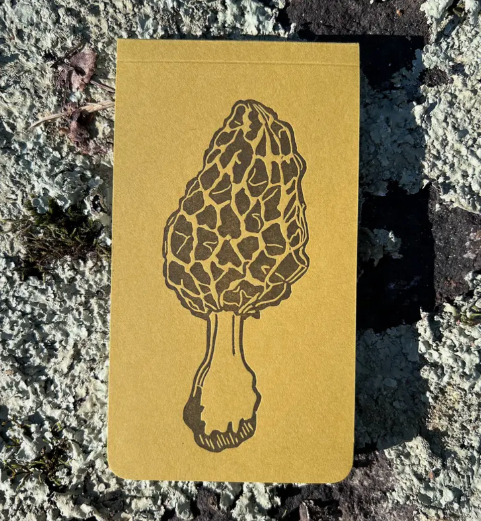 - cover is letterpress printed in dark forest floor brown with original linocut on 100# deep mustard paper