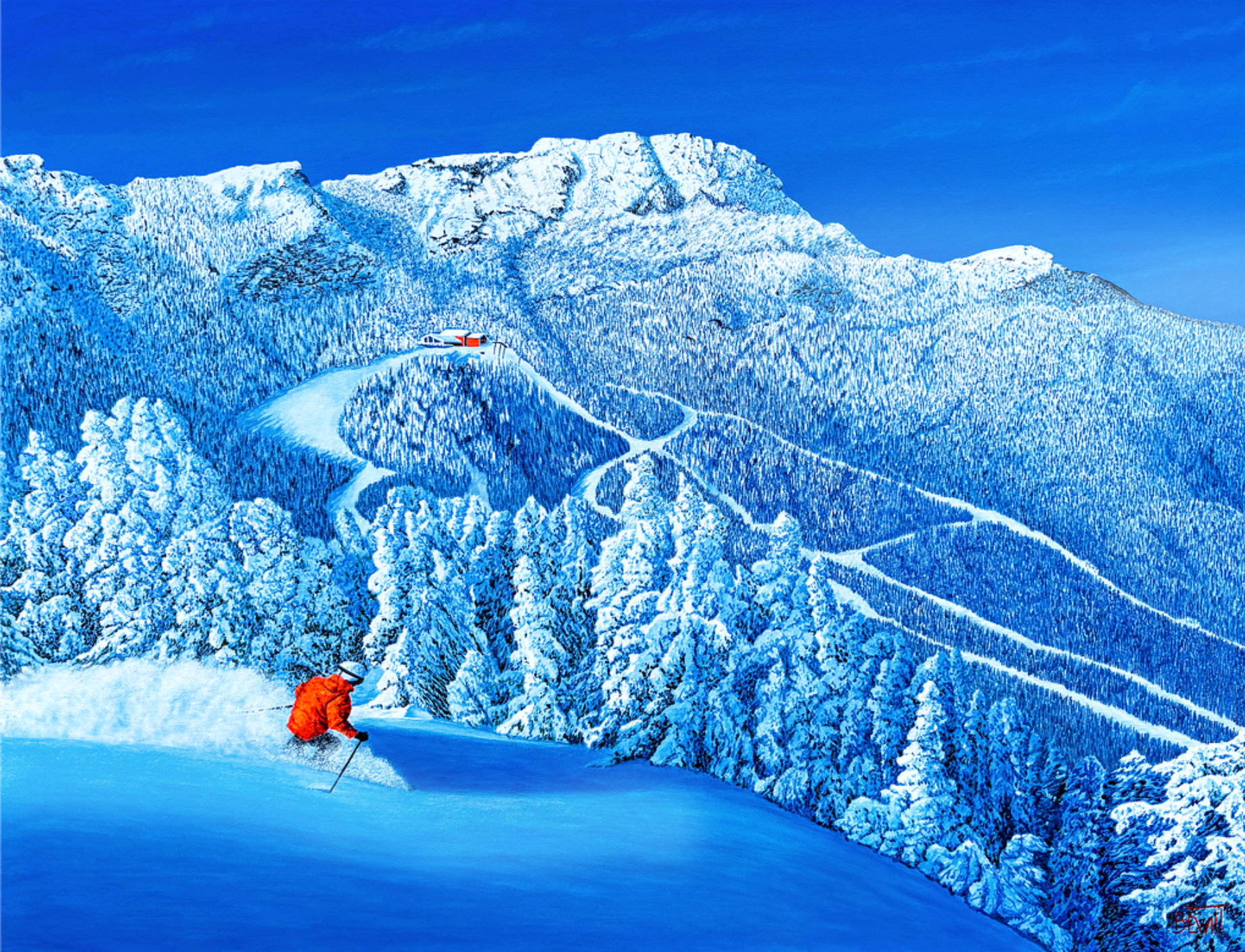 This is a true-to-color high quality reproduction print printed on heavy fine art matte paper of the original Brian Hewitt oil painting. Please note the dimensions are for the print including the mat.