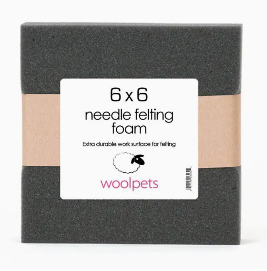 This needle felting foam pad measures 6 x 6 inches and is 1.5 inches thick.